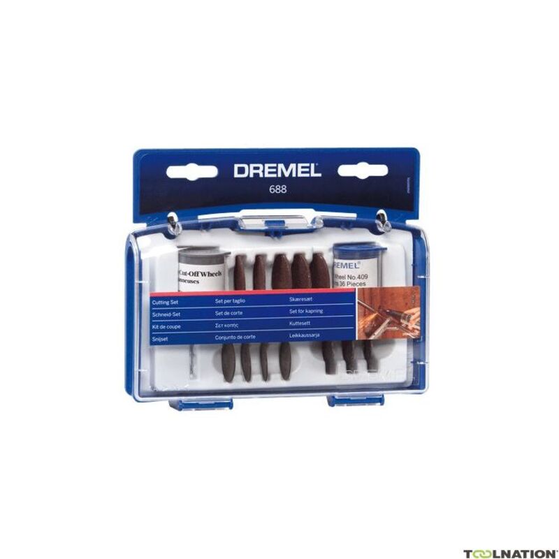 Набор оснастки для резки Dremel 26150688JA содержит насадки для резки металла, древесины или пластмассы с помощью гравера. Приспособления легко срезают болты, винты, а также прорезают канавки в различных деталях. Поставляется в чемоданчике, удобном для хранения и транспортировки.