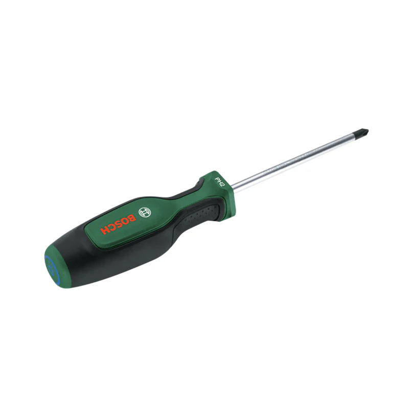 Классическая ручная крестовая (Phillips) отвёртка Bosch с наконечником PH2 и длиной рабочей части 125 мм, предназначенная для стандартных монтажных и ремонтных работ.